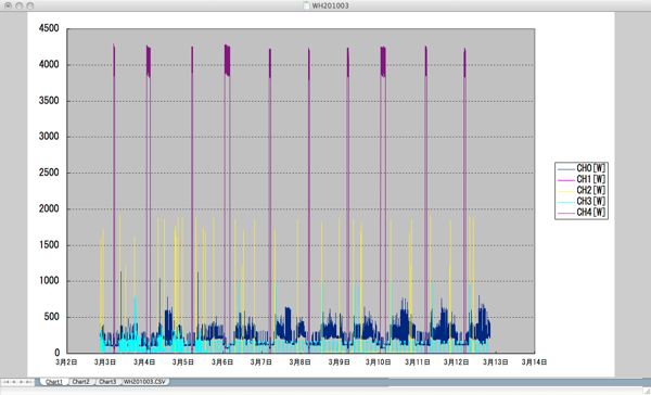 CH0:壁コンセント CH1:エアコン CH2:IHコンロ CH3:台所 CH4:温水器